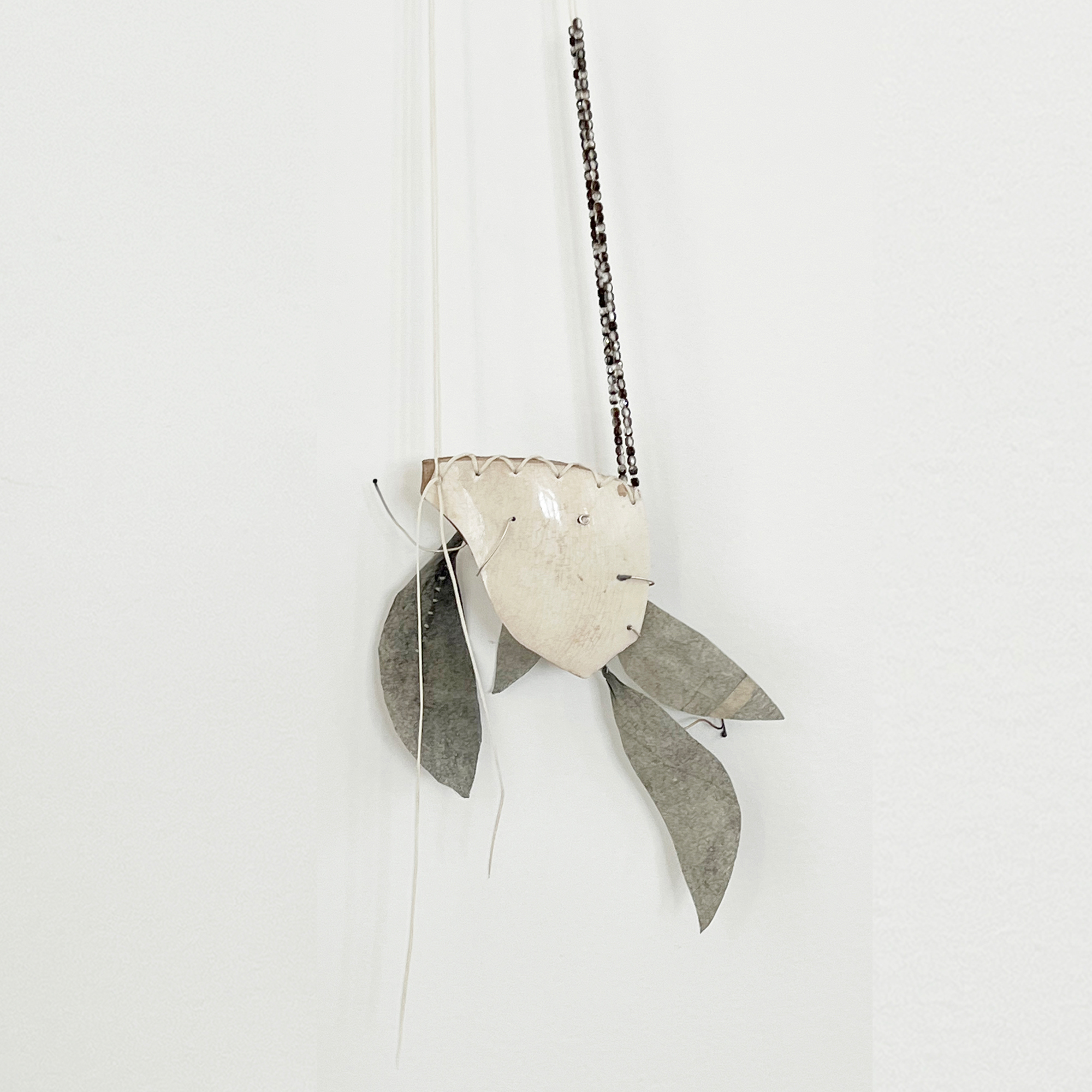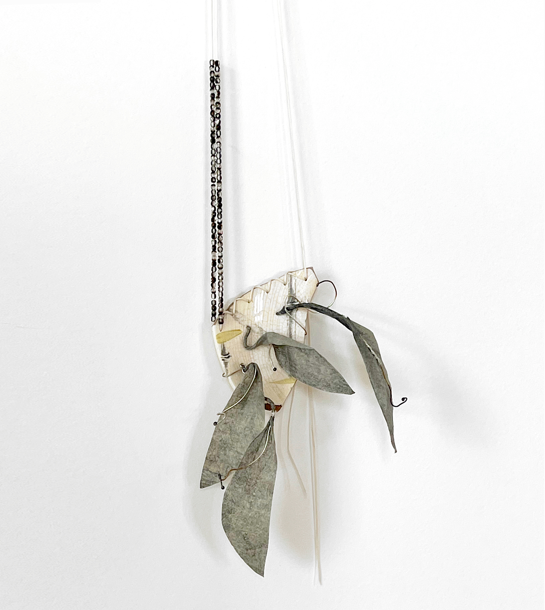 How appropriate to find a porcelain shard rejected by the sea with a delicate bamboo print and how serendipitous pairing it with a strong and nonetheless thin Japanese paper protected with a layer of bees wax!